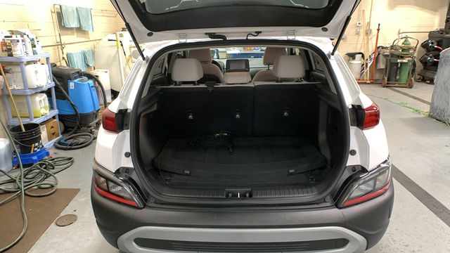 Lunar White 2023 Hyundai Kona SEL AWD CVT 2.0L I4 DOHC Dual CVVT 17" x 7.0J Alloy Wheels, 4-Wheel Disc Brakes, 5.715 Axle Ratio, 6 Speakers, ABS brakes, Air Conditioning, Alloy wheels, AM/FM radio: SiriusXM, Apple CarPlay & Android Auto, Brake assist, Bumpers: body-color, Cargo Net, Cargo Tray, Carpeted Floor Mats, Cloth Seat Trim, Delay-off headlights, Driver door bin, Driver vanity mirror, Dual front impact airbags, Dual front side impact airbags, Electronic Stability Control, Emergency communication system: Blue Link Connected Car Service (3-year complimentary subscription), Exterior Parking Camera Rear, Four wheel independent suspension, Front & Rear Mudguards, Front anti-roll bar, Front Bucket Seats, Front Center Armrest, Front reading lights, Fully automatic headlights, Heated door mirrors, Illuminated entry, Low tire pressure warning, Occupant sensing airbag, Option Group 01, Outside temperature display, Overhead airbag, Overhead console, Panic alarm, Passenger door bin, Passenger vanity mirror, Power door mirrors, Power driver seat, Power steering, Power windows, Radio: AM/FM/HD/SiriusXM Audio System, Rear anti-roll bar, Rear seat center armrest, Rear window defroster, Rear window wiper, Remote keyless entry, Security system, Speed control, Speed-sensing steering, Split folding rear seat, Spoiler, Steering wheel mounted audio controls, Tachometer, Telescoping steering wheel, Tilt steering wheel, Traction control, Trip computer, Turn signal indicator mirrors, Variably intermittent wipers.